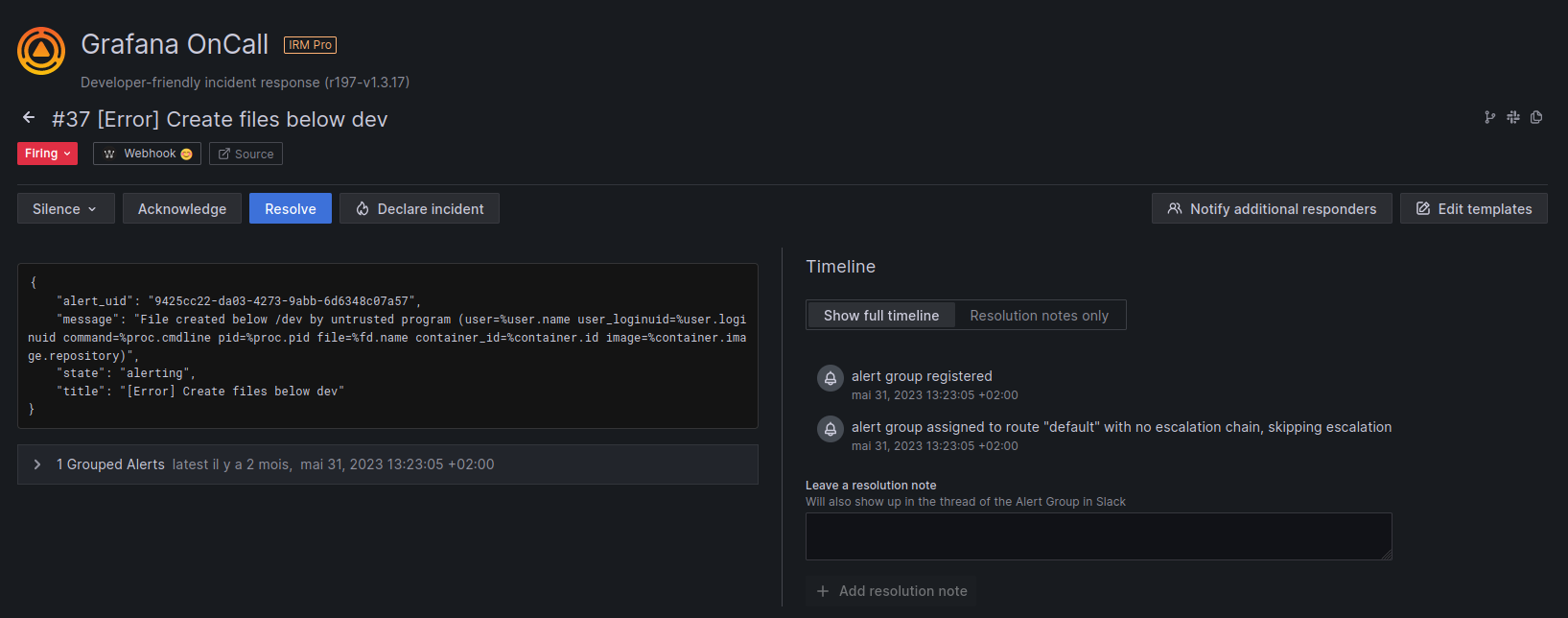 At the last KubeCon, we met with some of the Grafana maintainers. We discussed the integration of Falco using Falcosidekick within the OnCall project. It's done now.