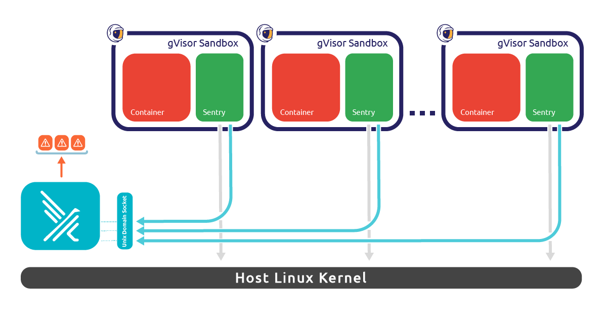 The key observation here is that there is one Sentry process for each gVisor sandbox. If we want them to be able to communicate with Falco, we must set up a form of inter-process communication.