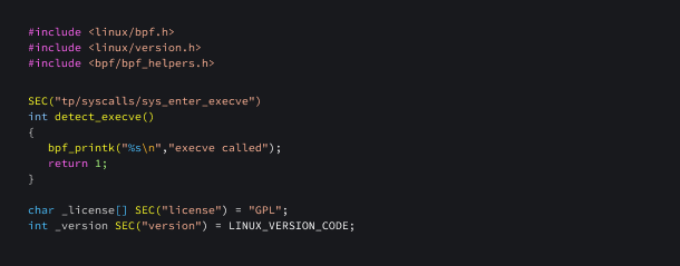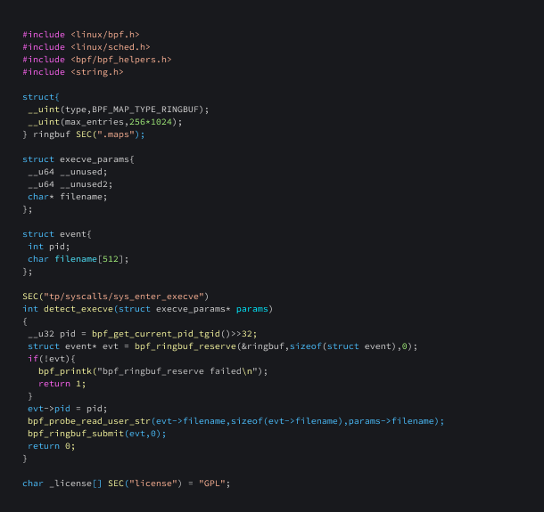 Here is an eBPF program that runs when the execve system call is made.