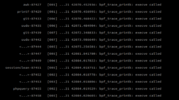 Messages we got after reading the 'trace_pipe' file.